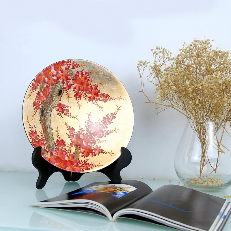 - Kích thước: Phi 20cm; 7,9inch - Chất liệu: Gỗ, sơn, Eggshell, lá vàng - Màu sắc: Hồng đỏ, vàng sáng. - Xuất xứ: Hàng Việt Nam. - Kích thước khác: Đĩa Tròn Sơn Mài P12, 15, 25, 30, 35, 40cm. - Ý nghĩa sản phầm: Đào biểu tượng cho sự may mắn, hạnh phúc.
